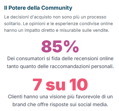 Gli utilizzatori del Web 2.0, il social web, tendono a nutrire fiducia verso coloro che sanno come coinvolgerli attivamente. Ecco quindi che la possibilità di ricevere feedback o commenti sul proprio operato, sui propri prodotti, sulle proprie strategie, e la creazione di una community ben strutturata non può che apportare benefici all’immagine aziendale