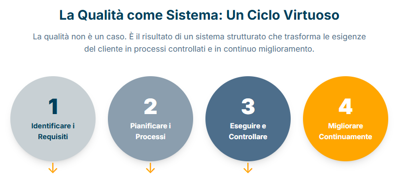 Il Sistema Aziendale della Qualità (spesso strutturato secondo i modelli internazionali come la serie ISO 9000) agisce come un meccanismo per:
