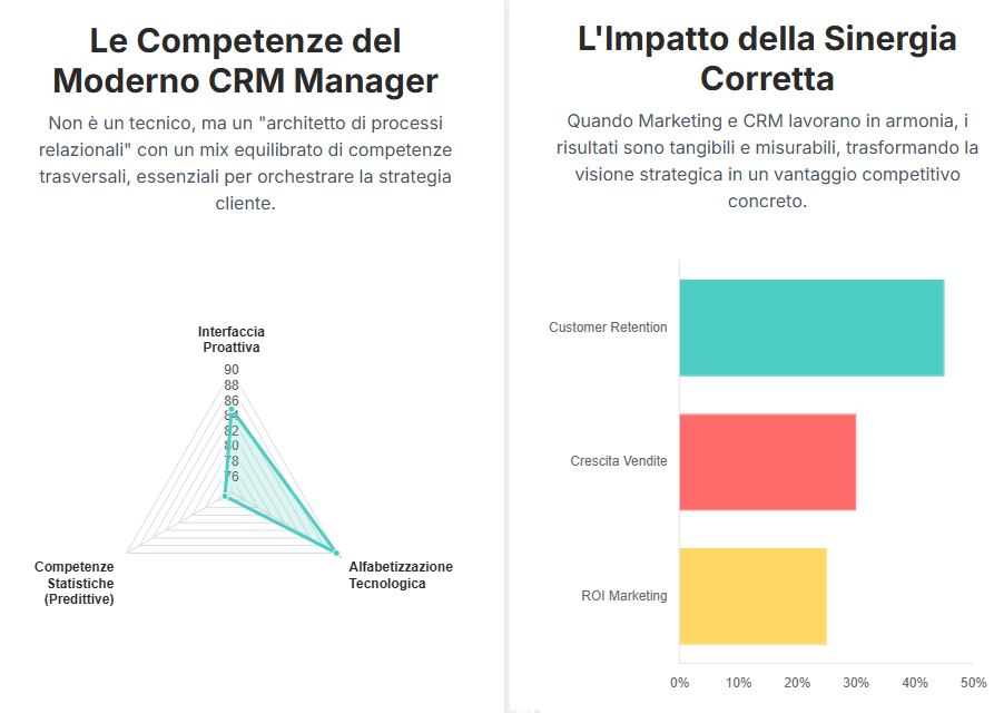 Quindi, il responsabile CRM di un’azienda, oggi, deve essere una persona curiosa che sa interfacciarsi in maniera proattiva e strutturata con le varie funzioni aziendali legate più propriamente al business, che abbia dimestichezza con quello che la tecnologia e le scienze statistiche offrono sul fronte rispettivamente del tracciamento delle relazioni cliente-impresa e dell’analisi descrittiva e predittiva dei profili/comportamenti della clientela stessa.