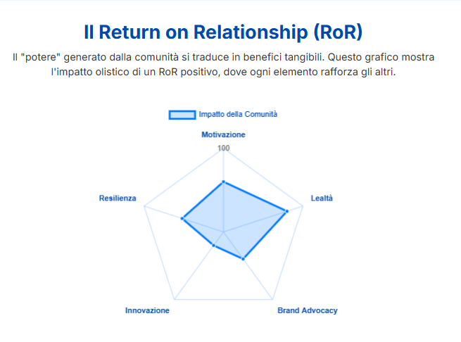 Il potere deriva da una comunità forte, organizzata e mobilitata per raggiungere i propri scopi. Una comunità unita e coinvolta può esercitare un’influenza significativa sui suoi membri e persino sul mondo esterno. Questo perché i membri di una comunità agiscono in modo coordinato e strategico, unendo le risorse e lavorando insieme. Quindi, anche se avere una grande portata può essere utile in certi contesti, costruire una comunità forte è spesso più importante per avere un impatto reale. Una comunità fornisce il supporto e le risorse necessarie per ottenere cambiamenti significativi e influenzare il mondo che ci circonda. È qui che vive il Return on Relationship all’interno di un’organizzazione. Quando i dipendenti si sentono supportati non solo dalla leadership, ma anche l’uno dall’altro, sono motivati a dare il meglio, a innovare e a mostrarsi con una lealtà che non si può comprare. L’effetto a catena è innegabile… Dai potere ai tuoi dipendenti, e loro daranno energia al tuo brand. Crea una cultura di comunità, e sbloccherai energia, resilienza e creatività che nessun algoritmo o strategia può offrire da solo. Quindi sì, metti i dipendenti al primo posto, ma non fermarti lì. Costruisci una comunità di dipendenti.  Perché la portata può connettere le persone, ma la comunità darà loro – e al tuo brand – un vero potere.