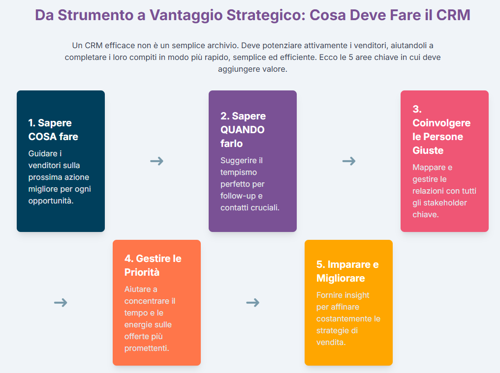 Non è sufficiente che il CRM semplicemente permetta ai venditori di svolgere i loro compiti.