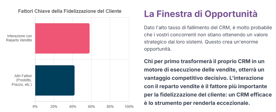 Gli studi di ricerca dimostrano che ben il 50% o più di impianti di CRM stanno fallendo la loro mission iniziale.