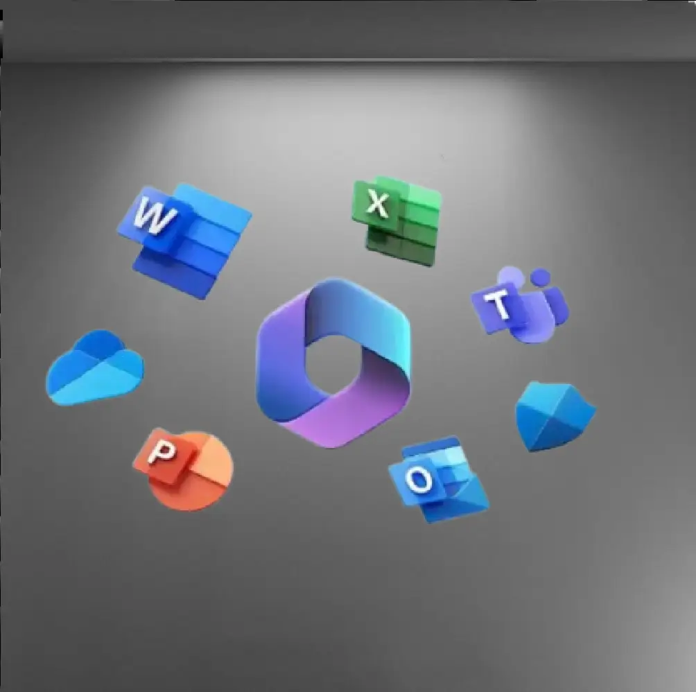 Excel, Word, Outlook, Teams, PowerPoint, Teams, MSDefender, Copilot.